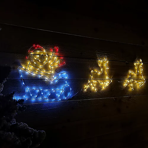 - A lovely chasing silhouette light of Santa and his sleigh and two reindeer