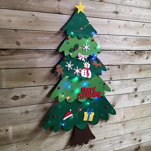 - 130cm tall 33 pieces DIY felt Chrsitmas tree with hook and loop decorations and 50 multicoloured LED lights