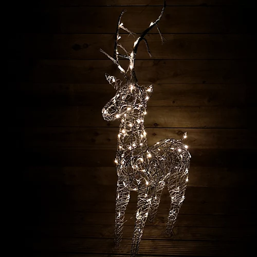- Has 96 mains powered LED bulbs in warm white woven through the reindeer.