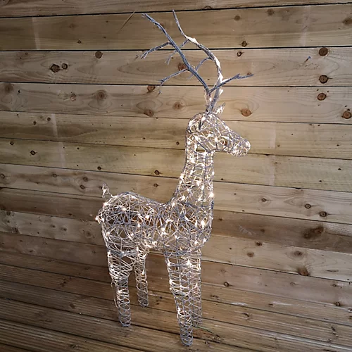 - 135cm tall grey pre lit reindeer standing Christmas decoration