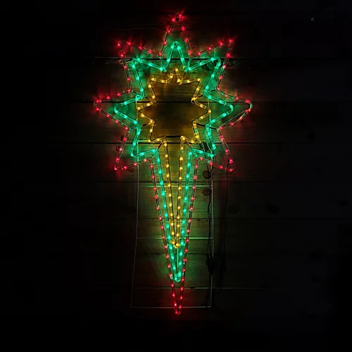 - Sturdy white metal frame bound with multicoloured LED rope lights