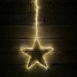 LED Hanging Star Shape Christmas Decoration. This stunning decoration is made from a White metal frame with 175 micro LEDs wrapped around the frame. 175 Warm white LEDs (bulbs non replaceable). Easy to hang, Simply hang anywhere in your home to brighten up any space. Suitable for both indoor and outdoor use (transformer must remain indoors). Mains operated. Approximately 7m Clear cable from product to plug and 38cm in height.