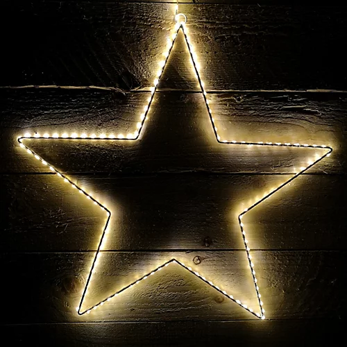 LED Hanging Star shape Christmas Decoration. This stunning decoration is made from a White metal frame with 175 micro LEDs wrapped around the frame. 175 Warm White LEDs (bulbs non replaceable). Easy to hang, Simply hang anywhere in your home to brighten up any space. Suitable for both indoor and outdoor use (transformer must remain indoors). Mains operated. Approximately 7m of Clear cable from product to plug and 58cm in height.