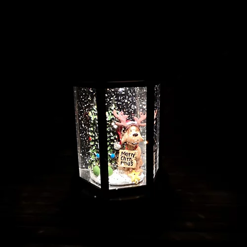 - Set in a stunning 18cm design of black lantern with a centre display of a Dog with a Christmas tree