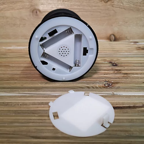 On / off switch and battery compartment are located on the base of the product