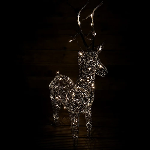 - Has 72 mains powered LED bulbs in warm white woven through the reindeer.