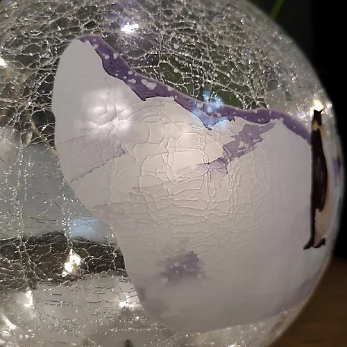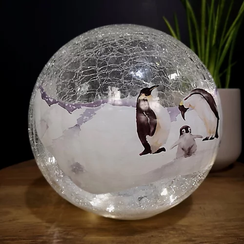- 20cm diameter Chrsitmas crakle ball with penguin scene
