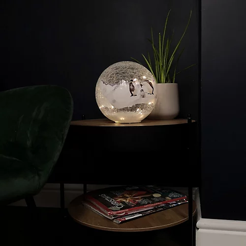 20cm Festive Christmas LED Crackle Effect Glass Winter Scene Ball