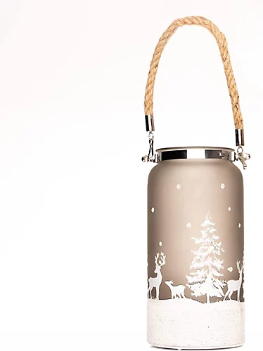 - This 23cm tall lamp has jute rope to hang, Christmas decoration comes in a choice of festive scenes to brighten up your home. Perfect for a side table, hall stand, windowsill or mantelpiece.