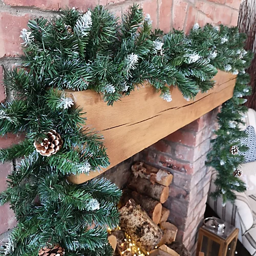 Add some greenery to your display this Christmas with this decorative snow tipped garland with pine cones