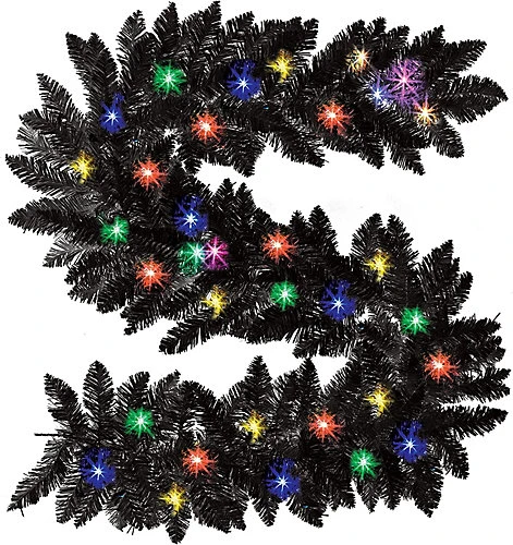 Imperial Pine Tips Design Garland which will give your home beautiful and attractive Christmas look. You can use it on any size door/fireplace/bedroom/stairs/walls. Its perfect size will suite all locations. Tips are made of high-quality fire-retardant PVC material. Size: 2M/200CM (length), Colour: Black, Tips: 160, LED Count: 50 Multicolour LEDs, Quantity: 1 x Pre-Lit Black Garland (Required 3 x AA batteries)