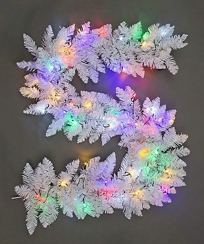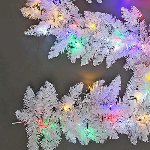 Imperial Pine Tips Design Garland which will give your home beautiful and attractive Christmas look. You can use it on any size door/fireplace/bedroom/stairs/walls. Its perfect size will suite all locations. Tips are made of high-quality fire-retardant PVC material. Size: 2M/200CM (length), Colour: White, Tips: 160, LED Count: 50 Multicolour LEDs, Quantity: 1 x Pre-Lit White Garland (Required 3 x AA batteries)