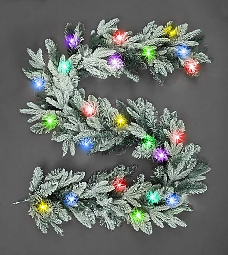 Lapland fir Tips Design Garland which will give your home beautiful and attractive Christmas look. You can use it on any size door/fireplace/bedroom/stairs/walls. Its perfect size will suite all locations. Tips are made of high quality fire retardant PVC material. Size:2M(length), Tips: 120, Colour: Snow flock, LEDs: 50 Multicolour LED(requires 3 x AA batteries-not included), Order Quantity: 1Pc