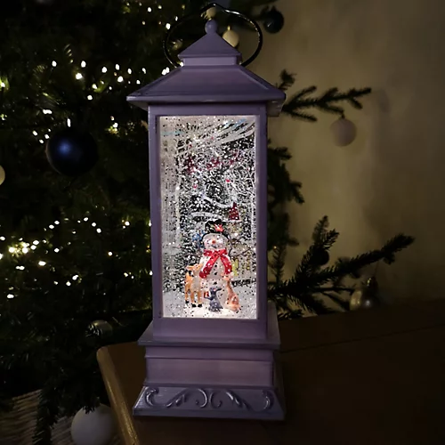 Snowtime 31cm Christmas Glitter Water spinner in an white antique style lantern