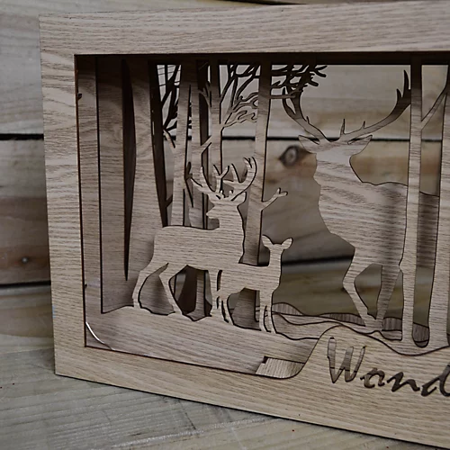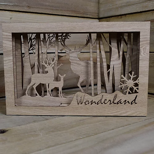 - This stunning wooden display of a woodland scene with Reindeers is illuminated by LED lights