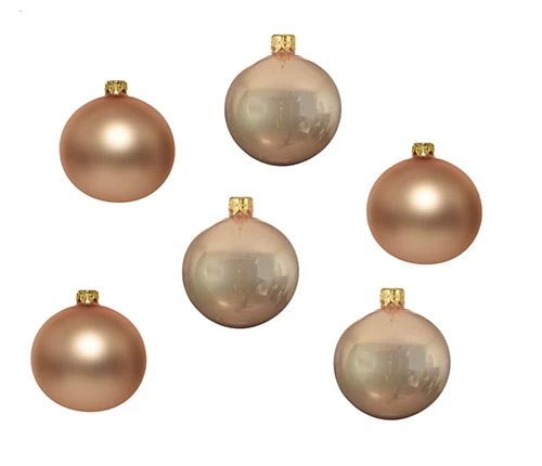 A pack of mixed size and finish round Christmas tree baubles