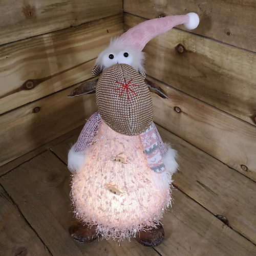 - 40cm tall light up Christmas soft reindeer with pink outfit