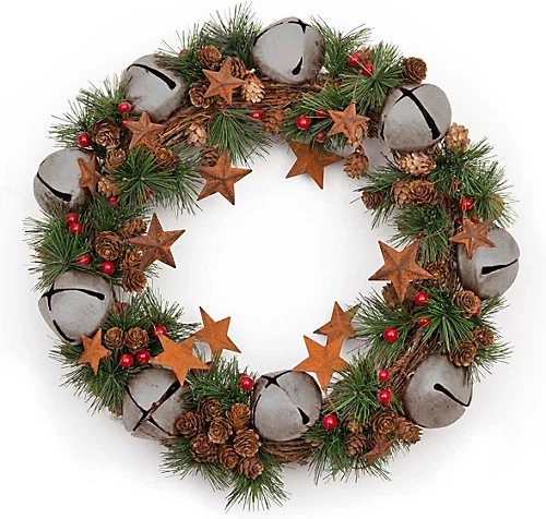 - Decorated with cream bells, stars, pine & berries.
