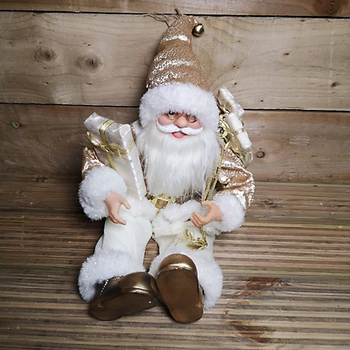 - Santa is in a sitting position, and has wired arms and legs so can be positioned into a variety of poses