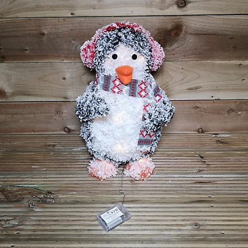 - LED lit penguin with ear muffs, scalf anf snow flock