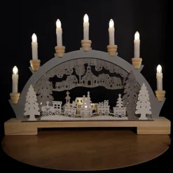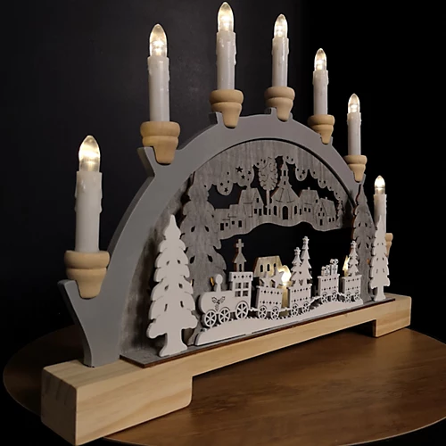 Festive 45cm Christmas candlebridge with wooden train silhouette display