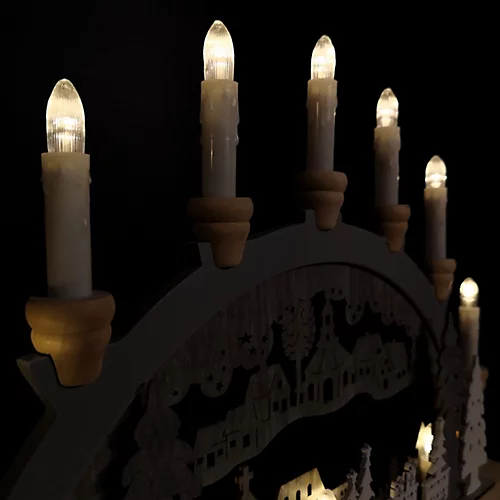 Fitted with a total of 10 candles with bulbs, which both aboive and below the arch, creating a wonderful ambient atmosphere.