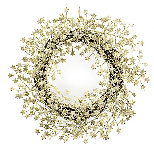 A classy gold wreath adorned with stars perfect for the Christmas season, sparkly, festive and a great addition to your Christmas décor. A useful hanging hook attached, displaying this wreath couldn’t be easier!