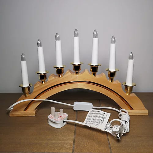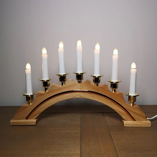 Premier 45cm Christmas candlebridge in traditional light wood finish with a decorative gold cup finish