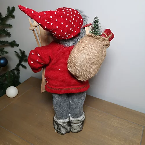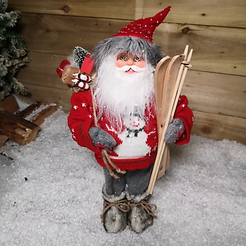- Carrying gifts and a set of skis, Santa is an adorable figurine