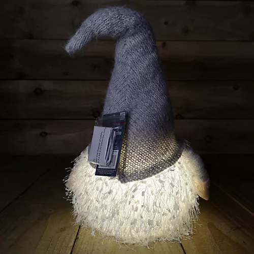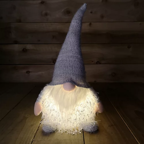 47cm Battery Operated LED Plush Grey & White Sitting Gonk Decoration