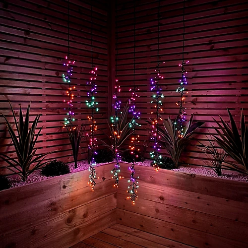 Cascading lights are ideal for providing decorative lighting to your indoor or outdoor space. Drops fall from a central spine, perfect for draping from trees in the garden.