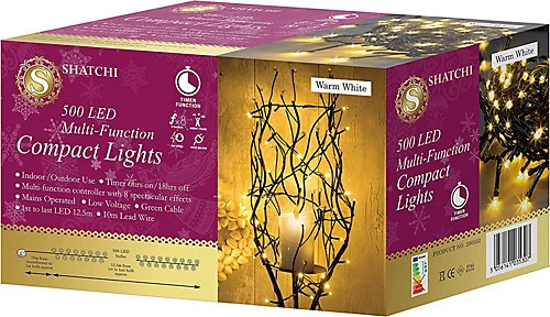 - 500 LEDs Compact lights for christmas holiday home decoration. It’s design and quality will make your christmas decorationss more brighter. You can decorate your garden, tree, home or any party gatherings with this stylish lights.