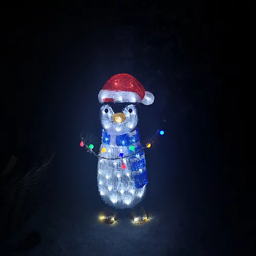 - 51cm tall pre lit coloured penguin acrylic decoration