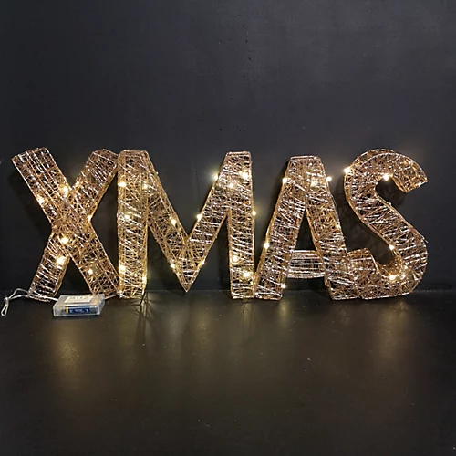 - 69cm LED rose gold metal “XMAS” Sign battery powered light up sign