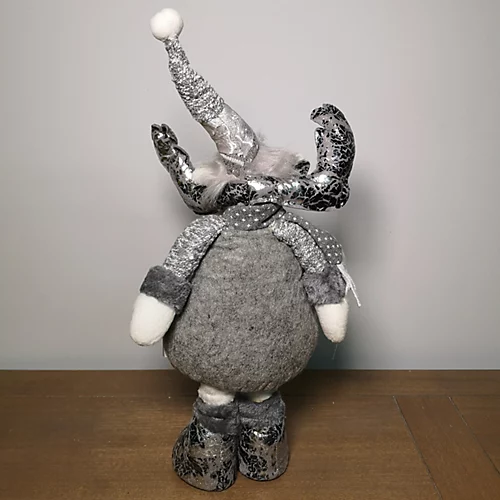 - Kitted out in festive grey marl knit clothing, with a wired hat that can be tweaked to preference of pose