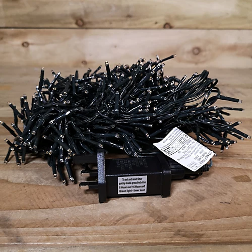 - 768 LED Multicoloured compact cluster lights on a 4.5m wire. With an additional 4m lead wire from plug to first light