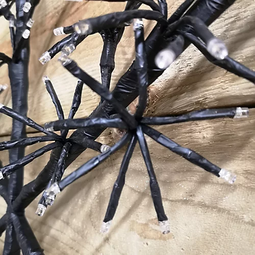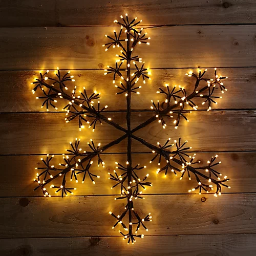 Christmas flashing effect LED Snowflake decoration. This stunning design is made with a Black metal frame with bendable branches with LEDs . Easy to assemble, simply pull out the branches from the frame to create the shape of a Snowflake. The decoration features a hoop on the back for simple hanging anywhere in your home.. Suitable for indoor or outdoor use (transformer must remain dry at all times). 336 Flashing effect LEDs in Warm White (bulbs non replaceable). Mains operated with a 8m Black cable from product to plug. 78cm in height.
