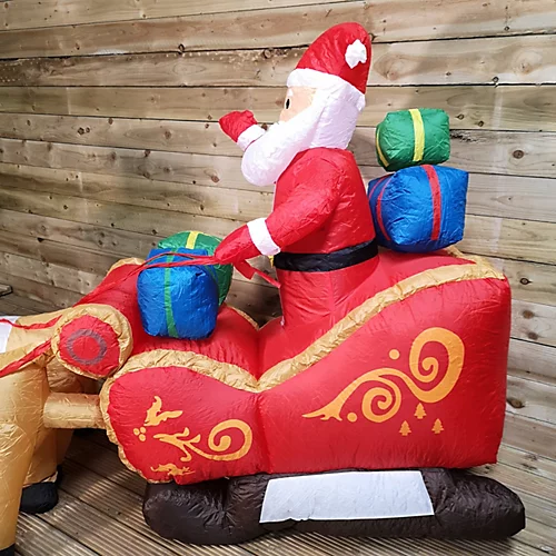 8FT INFLATABLE SLEIGH – 240cm long Santa Sleigh with his 2 Reindeers celebrating the festive holidays is perfect for any Christmas inflatables outdoor decorations display.