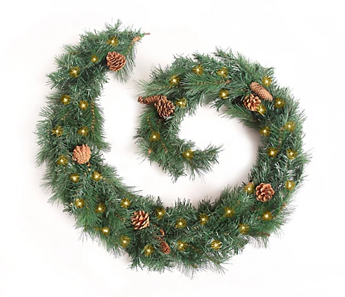 6ft in Length with 12 Pine Cones attached. (160 tips). Supplied with 50 Warm White LED Lights.