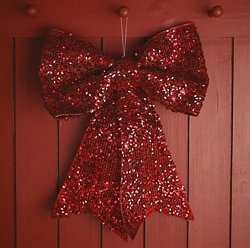 Reminiscent of the glittering ruby slippers worn by Dorothy in the Wizard of Oz, our big red, sequined bow adds a touch of Christmas magic hanging on a wall or a door, where it will catch the light and glisten with joy.