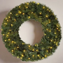 70cm Large Luxury Green Pre Lit LED Christmas Wreath