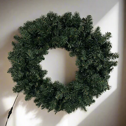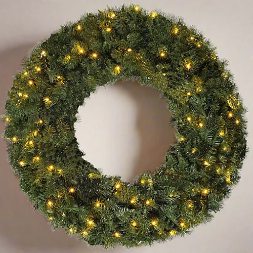 Our 70cm Christmas wreath features 100 warm white low energy LED lights evenly spaced throughout, which look excellent when lit.