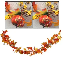 Livingandhome 180CM Maple Leaf Autumn Christmas Garland Home Decor With LED Light
