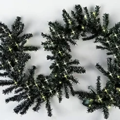 55cm Pre-Lit Green Christmas Wreath Alaskan Pine With 30 Warm White LEDs