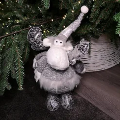 73cm Battery Operated Lit White Christmas Standing Gonk With Grey Hat