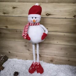 70cm Sitting Plush Christmas Snowman Holding Skis With Dangly Legs
