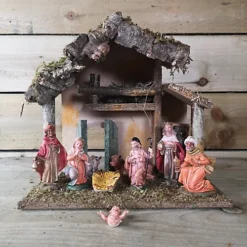 8 Figure Festive Christmas Nativity Scene In Stable With Mary, Joseph, Jesus