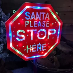 65cm Light Up Christmas Red And White Santa Stop Here Outdoor Sign With 45 Multi Colour LED
