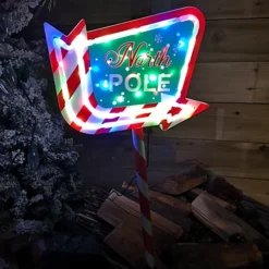 67cm Light Up Christmas Red White And Green North Pole Outdoor Sign With 35 Multi Colour LED Lights