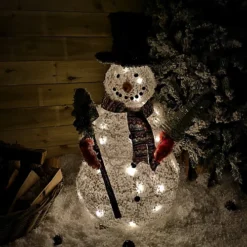 90cm Battery Operated LED Snowman Holding Shovel & Tree Indoor Christmas Decoration